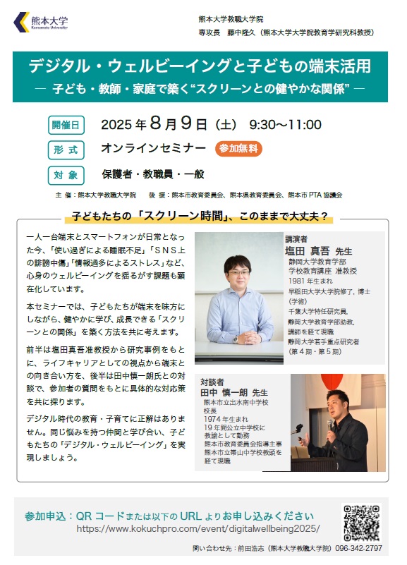 • オンライン研修会「熊本大学教職大学院情報教育研修会」開催のお知らせ
