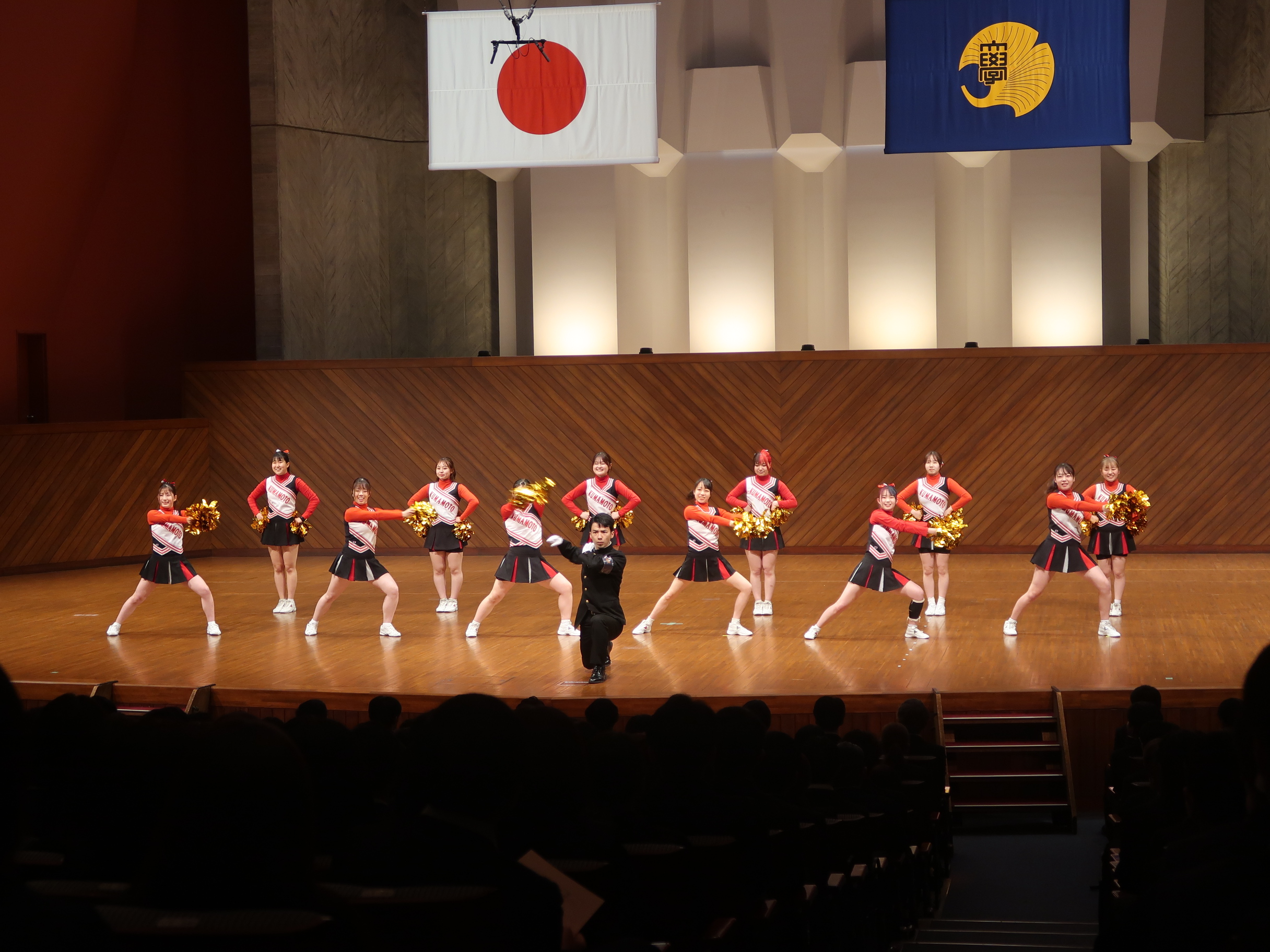 式典後は、熊本大学フィルハーモニーオーケストラによる演奏や熊本大学体育会応援団、応援団チアリーダー部「BLAZES」による演舞が行われ、新入生を歓迎しました。
